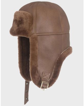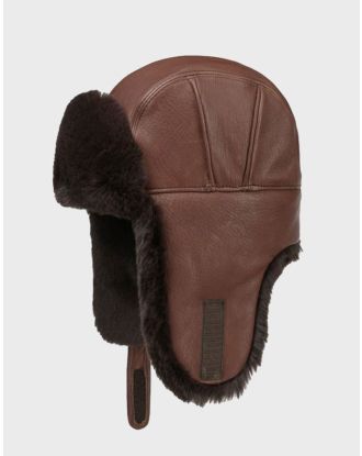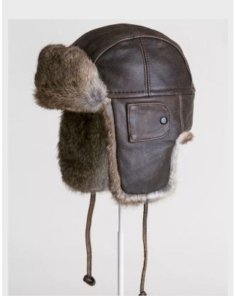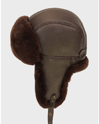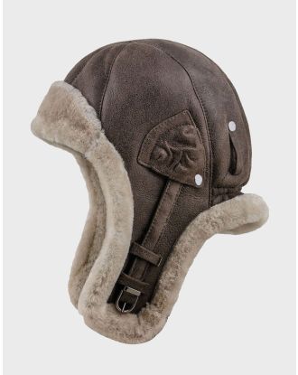 Lambskin Brown Leather Aviator Trapper Fur Hat