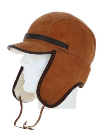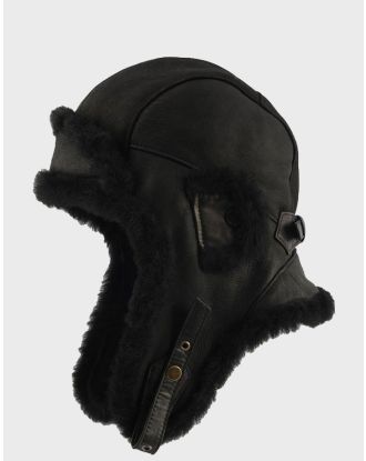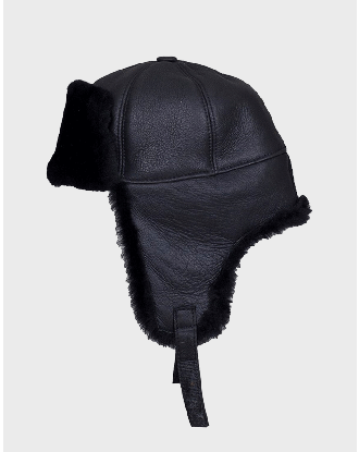 Hunting Leather Trapper Hat With Sheepskin Fur