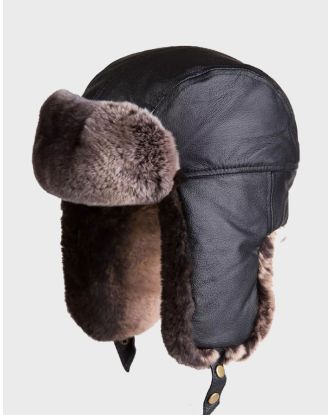 New Sheepskin Leather Rabbit Fur Trapper Hat